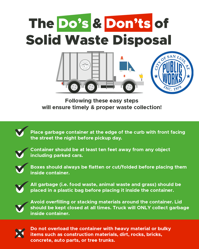 As crews start early, please place your containers out the night before or by 6 a.m. to avoid the crew missing your pickup.